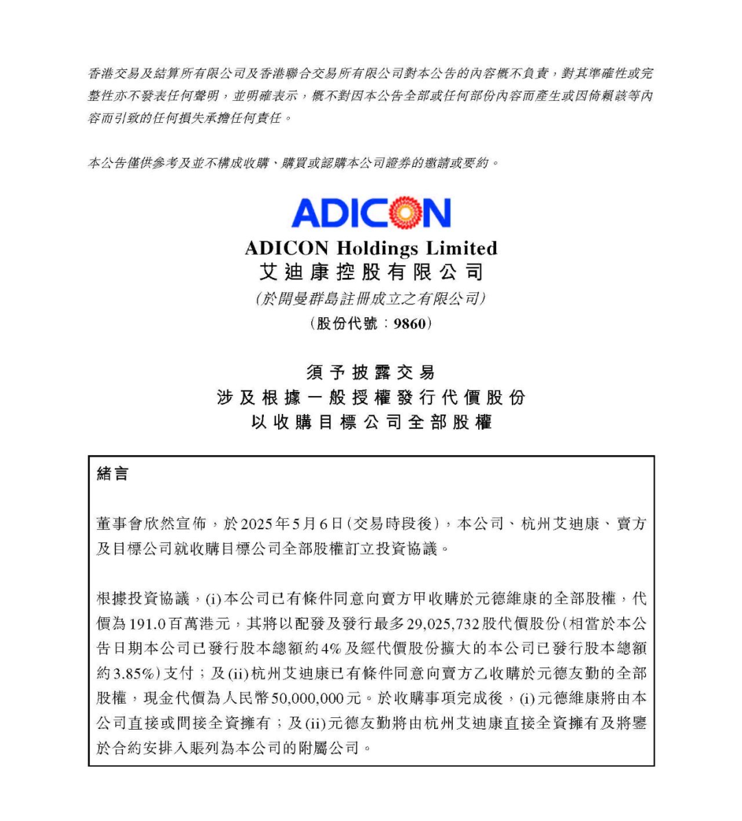 作为国内第三方医学检测行业的先行者,艾迪康始终致力于通过高质量的检测服务与持续创新的技术能力,为医疗机构和广大患者提供全方位的诊断支持和临床决策保障。本次收购是艾迪康全集团战略布局的一部分,旨在通过整合优质资源,拓展服务能力、深化专业优势。元德友勤在血液检测领域具备深厚积累,将有助于公司增强在ICL高价值项目中的专业深度与服务广度;同时,收购元德维康则是推动公司向诊断试剂研发与生产延伸的关键一步,不仅提升自主研发与制造能力,也强化了供应链安全与技术差异化。这一整合有望提升公司创新力和运营效率,进一步巩固行业领先地位。