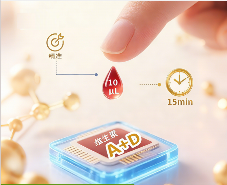 单次检测同步完成维生素 A、25-羟基维生素D两项临床指标,一站式评估营养状态。