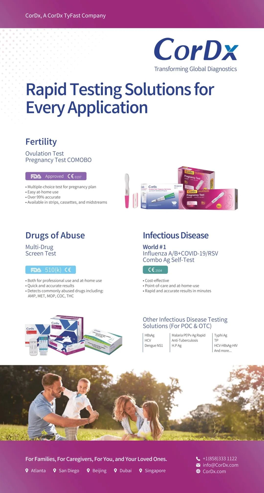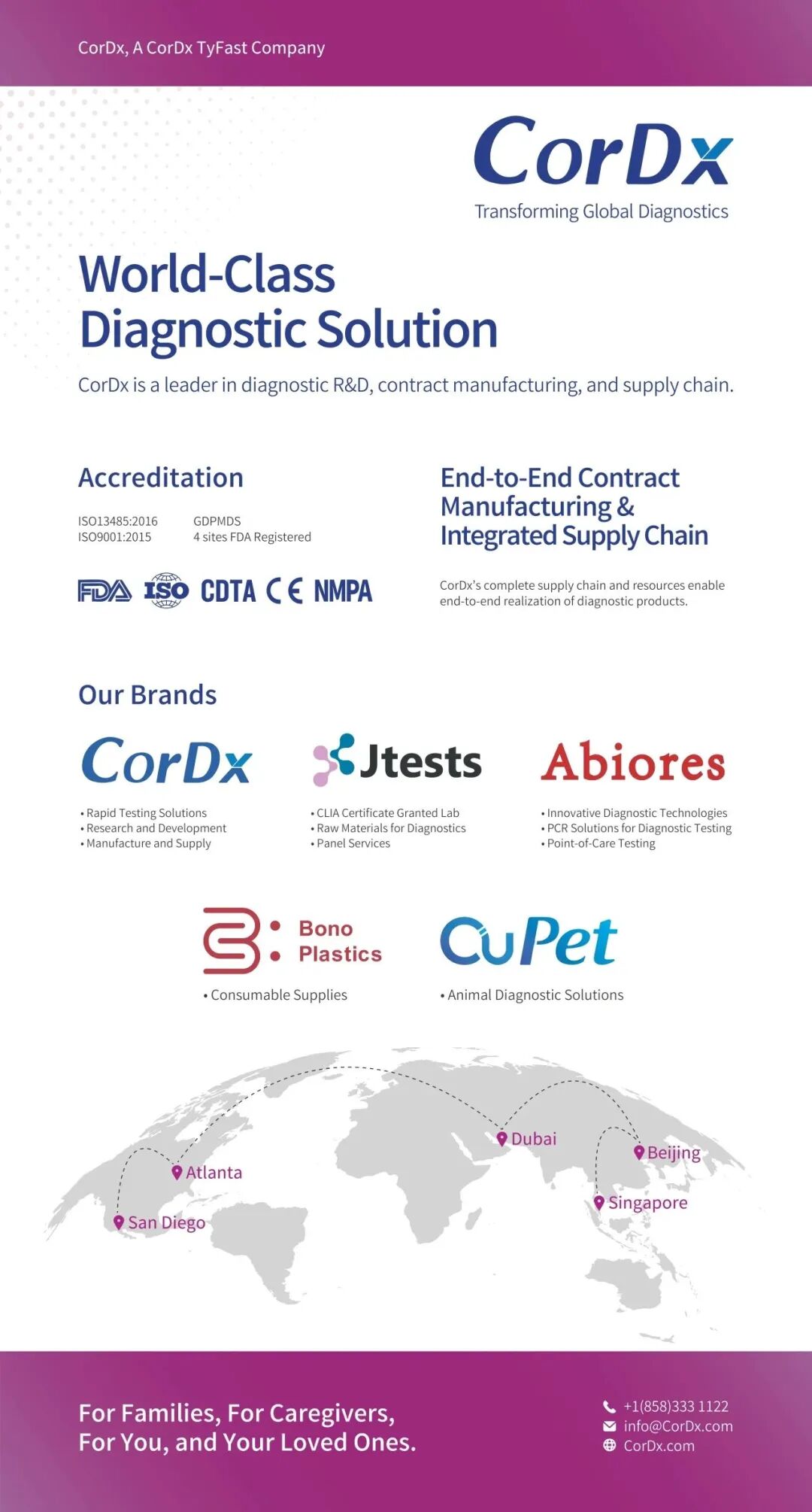 CorDx TyFast全球拥有四个研究院,布局于加州SD,北京大兴,河北雄安,中国海南岛,持续提升分子诊断、胶体金层析、荧光免疫、生物芯片、重组蛋白、mRNA疫苗、宠物用品、电池材料、Ai质量管理系统等科技创新平台。