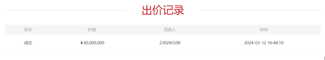 仅新产业一家出价,最终以起拍价8000万元竞得。