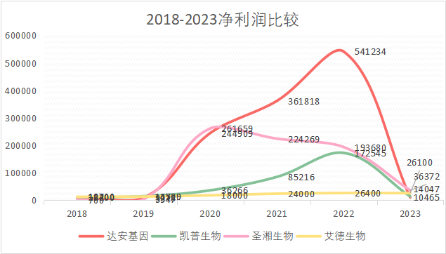 从利润率情况来看,圣湘生物的利润最高3.6亿,艾德生物达到2.61亿,凯普生物紧随其后1.4亿,达安基因为1.06亿。