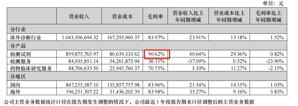 艾德生物的毛利率是四小龙中最高的,达到了90.62%,高于行业平均水平,可见艾德生物的产品在议价权和市场稀缺性方面还是非常不错的,其自营的检测服务也能达到36%的毛利率,但从整体变化来看,以检测试剂为主的产品正在快速增长,而检验服务正在缩小,这也与行业形势变化相关联起来了。