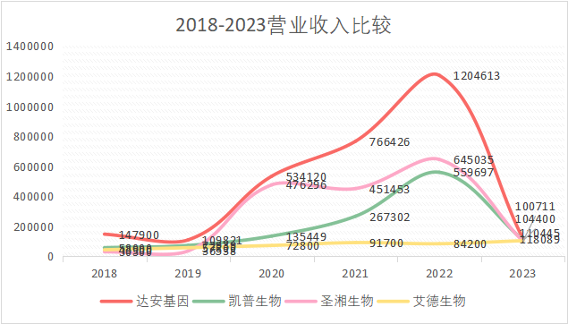 在2023年,有3家国内传染病分子诊断企业正式迈入10亿俱乐部,他们分别是达安基因、凯普生物和圣湘生物,而算上伴随诊断领域的巨头艾德生物,就凑齐了分子诊断领域的“四小龙”。