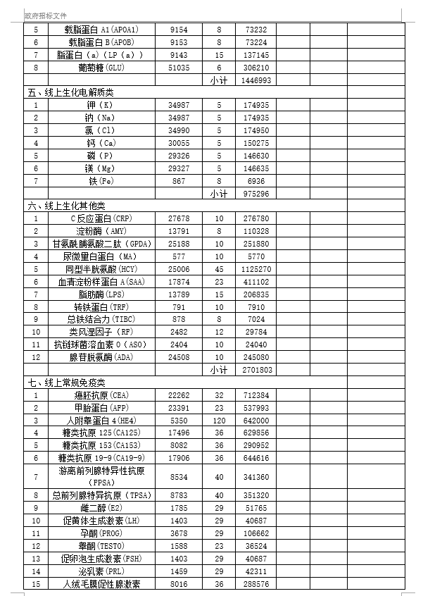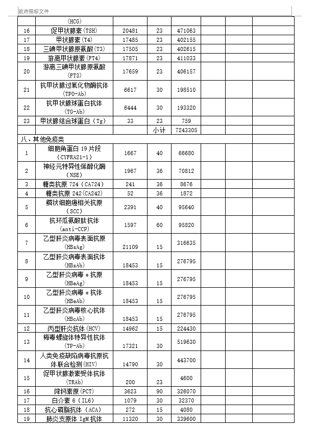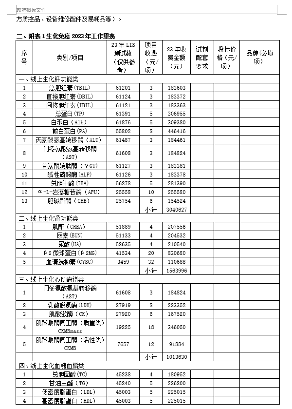标项名称: 生化免疫流水线设备租赁试剂采购