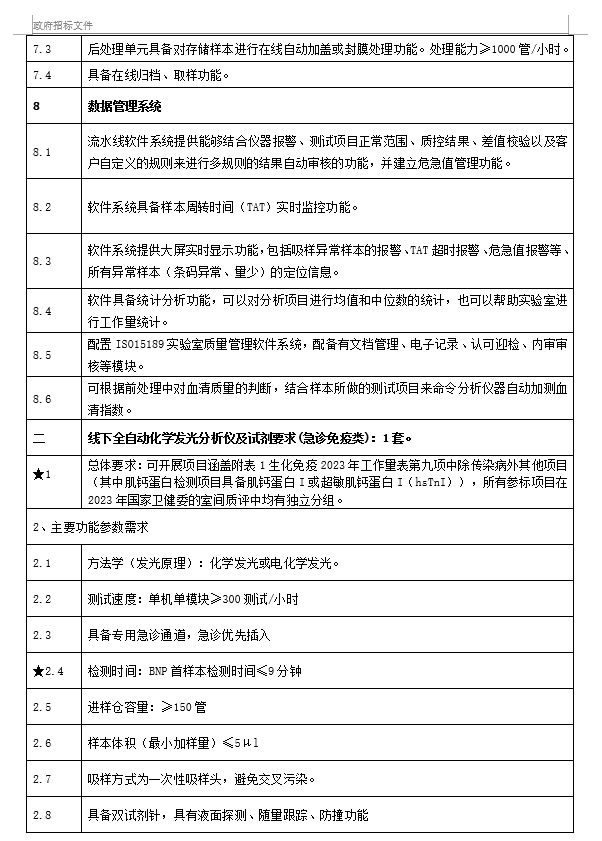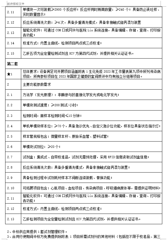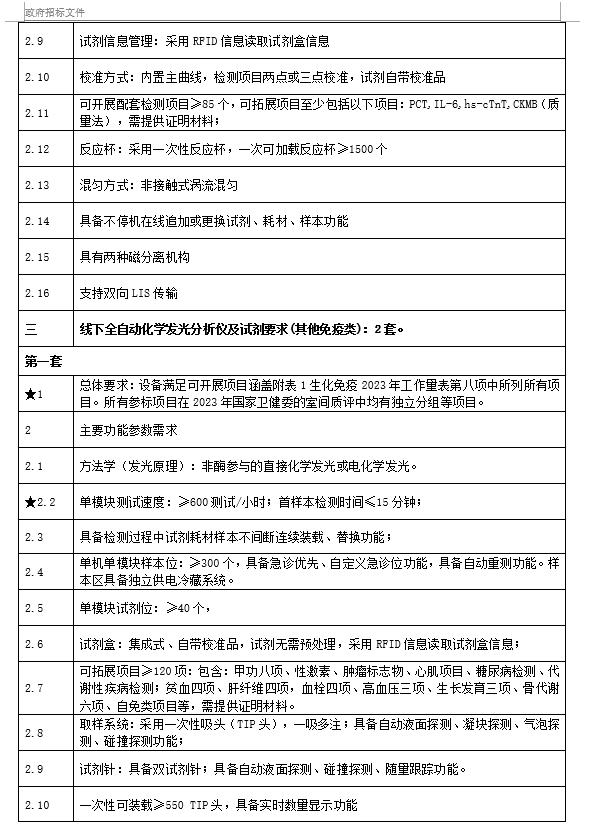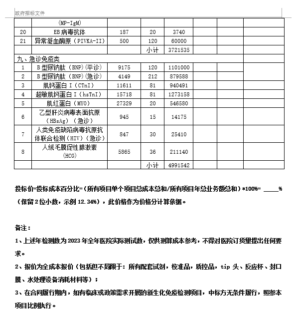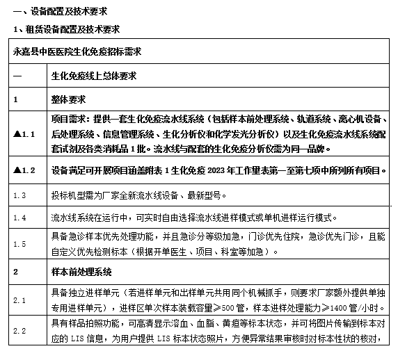 简要规格描述或项目基本概况介绍、用途:生化免疫流水线设备租赁试剂采购,详见招标文件