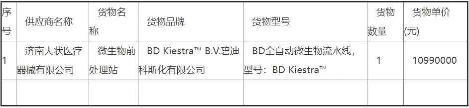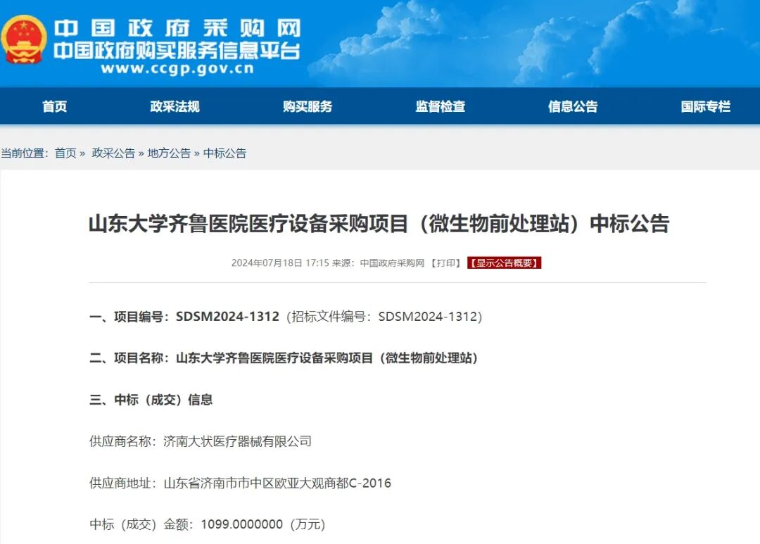 山东大学齐鲁医院医疗设备采购项目(微生物前处理站)