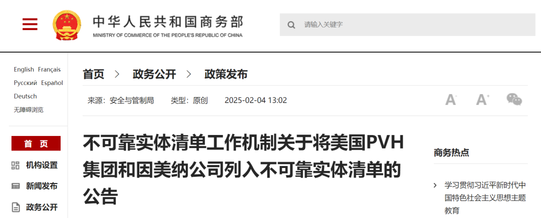 2025年2月13日,商务部召开例行新闻发布会。商务部自贸区港建设协调司副司长、新闻发言人何咏前出席,介绍相关情况并回答媒体提问。商务部首次回应,将对因美纳采取一项或多项具体措施。