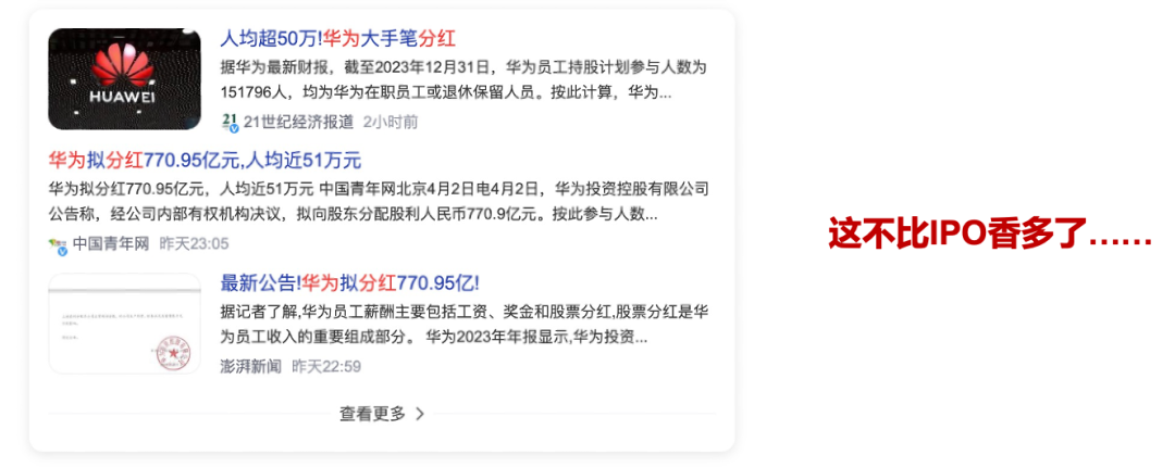 如果企业赚钱能力足够强,不上市也是可以达到这个目的的,比如昨晚刷屏的另一条新闻。