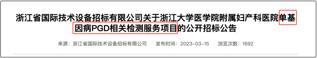 2023年3月15日,浙大妇产医院委托某招标公司发布采购公告: