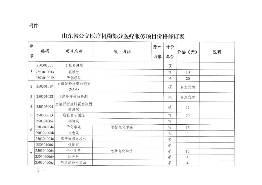 附件:山东省公立医疗机构部分医疗服务项目价格修订表.pdf