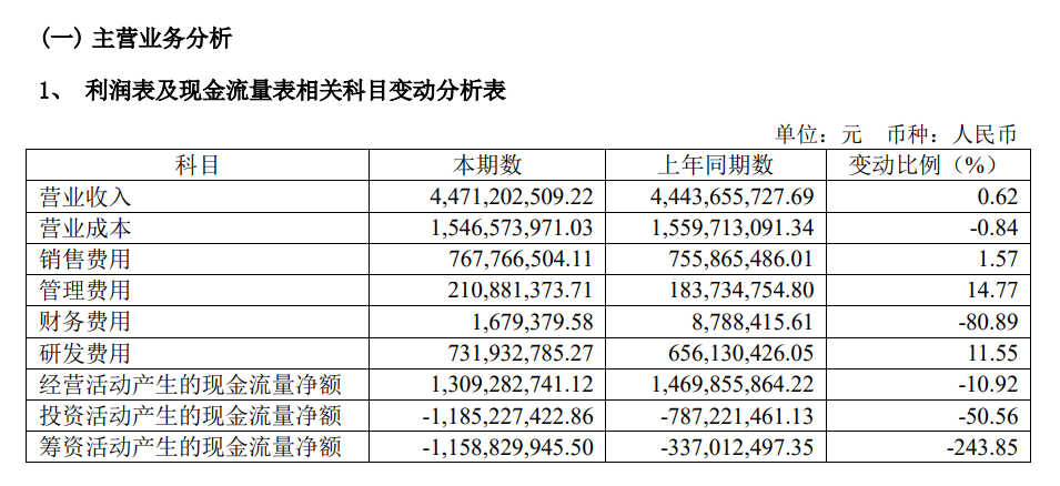 可以看出,营业成本在下降,管理费用在上升,销售费用略增,研发费用每年两位数上升。