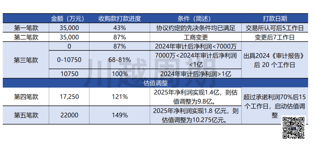 回到圣湘收购中山海济时约定的付款条件,当时川越周期做了个清晰的表格。