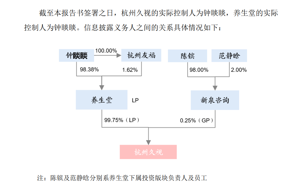 杭州久视、养生堂都属于钟睒睒实控的企业,股权控制在98%以上。