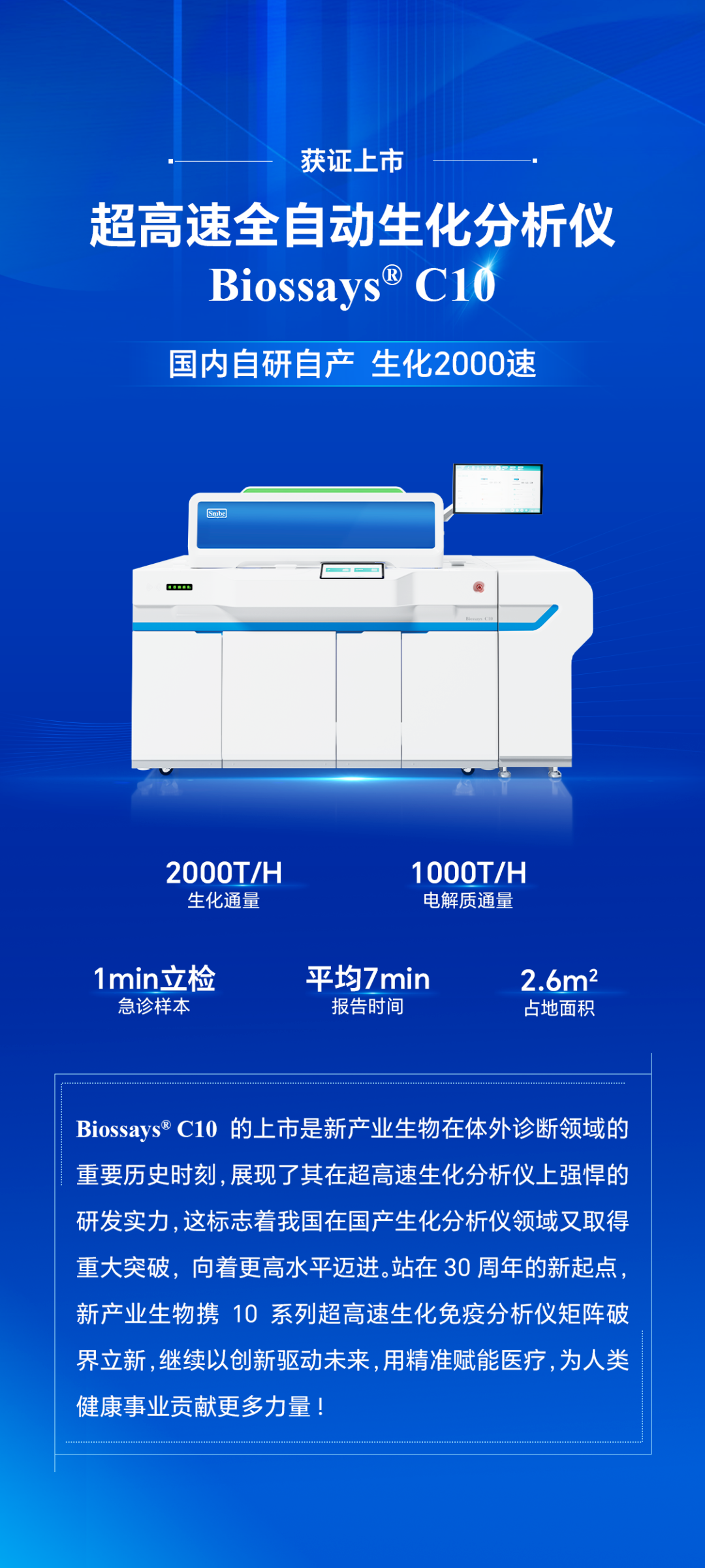 近日,深圳市新产业生物收到广东省药品监督管理局颁发的《医疗器械注册证》,2000速生化仪C10获证。( 粤械注准 20252220960)