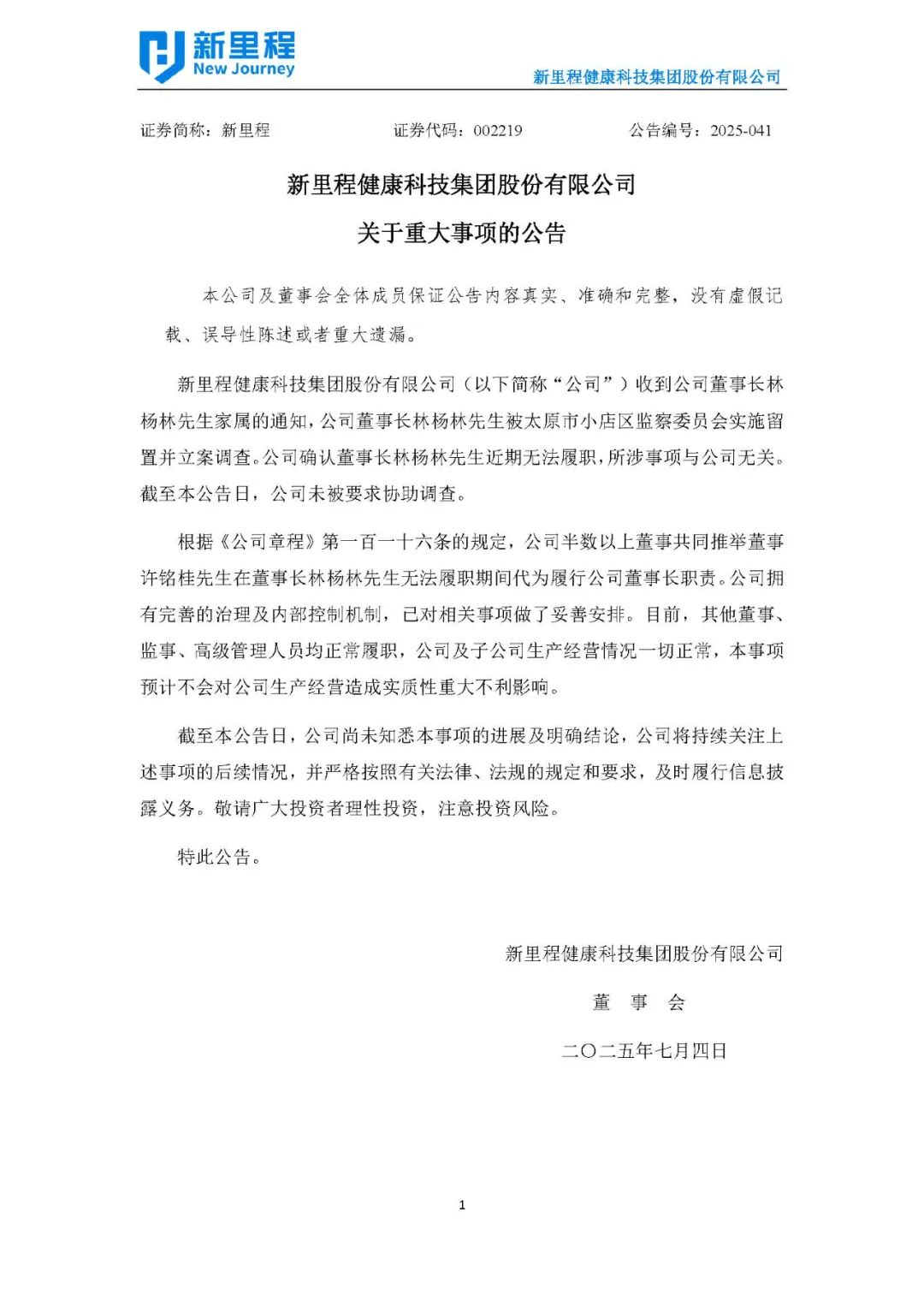 新里程健康集团有限公司是国内医疗健康领域的改革者、创新者和引领者,以医疗服务为集团基础设施、发展引擎与产业入口,构建医疗集团、康养集团、医药集团和保险公司“四位一体”的健康产业格局,成为国内“银发经济”领军企业。