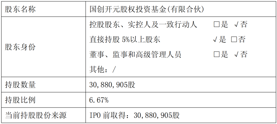 减持主体:国创开元(持股6.67%的非实控人股东)