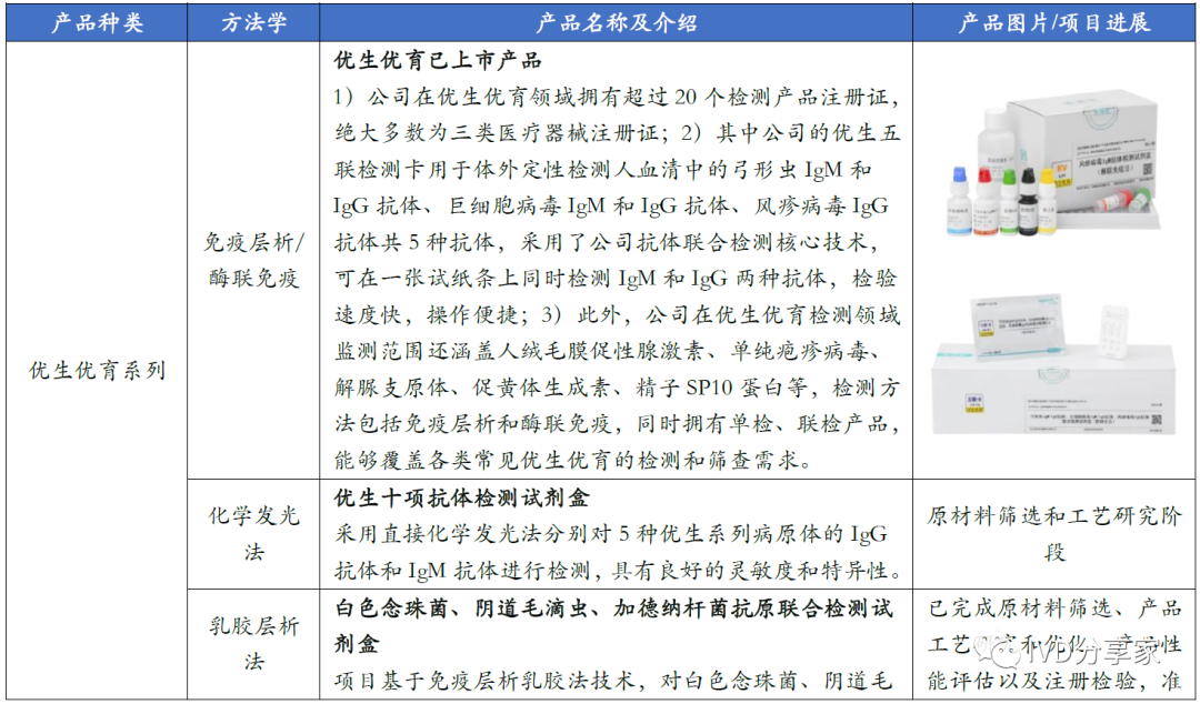 公司依托现有成熟渠道,加速业务横向拓展。在呼吸道检测领域渠道优势的领衔下,继续发挥联检技术优势,建立并覆盖优生优育、消化道、肝炎等其他领域。截至2023 年8 月,公司的重磅产品妇科三联检产品(白色念珠菌、阴道毛滴虫、加德纳杆菌抗原联合检测试剂盒)和诺如分型产品(诺如病毒GI 型/GII 型核酸检测试剂盒)已处于申报注册阶段,多款在研产品属于联检特色POCT,预期在未来2-3 年持续贡献业绩增量。