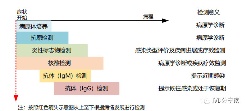图表16 呼吸道传染病进程中临床检测项目及意义示意图