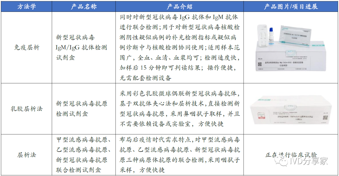 除了目前已获批常规新冠抗体、抗原检测产品,公司甲流/乙流/新冠三联检试剂盒已完成原材料筛选、产品工艺研究、性能评估和注册检验,有望2023 年下半年迎来获批;公司三联检新冠检更好针对并满足了新冠与流感的鉴别检测需求,有望在未来继续拓宽国内及海外新冠检测市场。