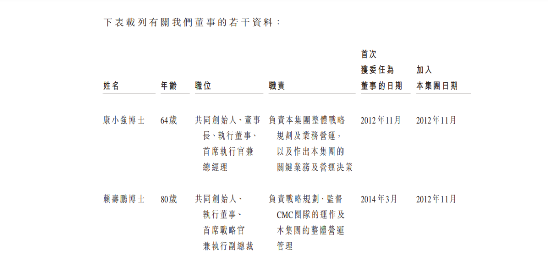 根据招股书显示,共同创始人赖寿鹏博士,今年已经80岁了。