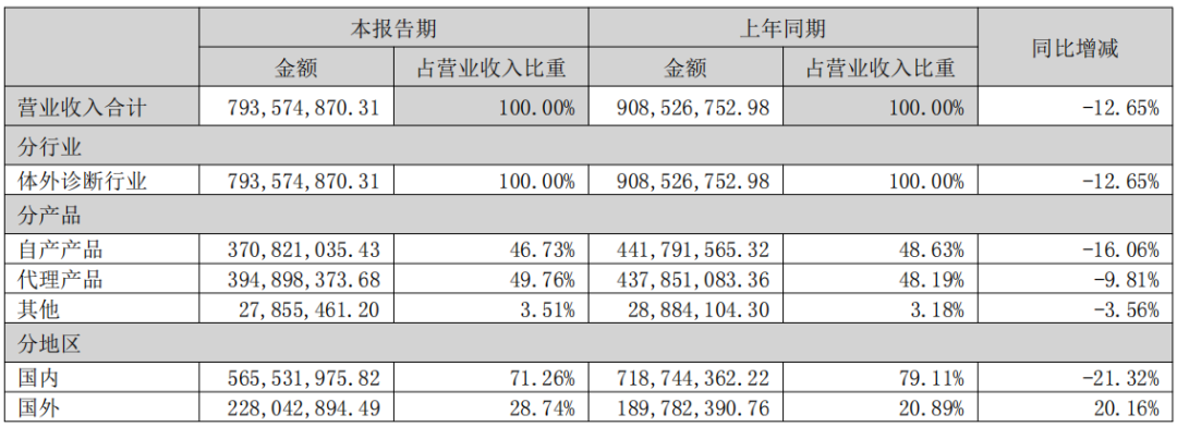 业绩下滑的主要原因:上半年国内营收5.66亿元,同比下降21.32%,主要受IVD行业集采、检验结果互认及检验套餐拆解政策影响,院内常规检测需求短期收缩。与之形成对比的是,海外市场表现亮眼:上半年海外营收2.28亿元,同比增长20.16%,占总营收比重提升至 28.74%。