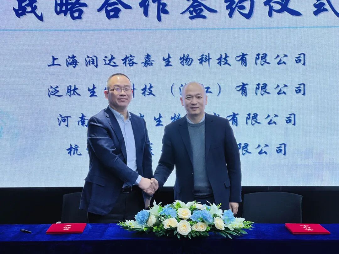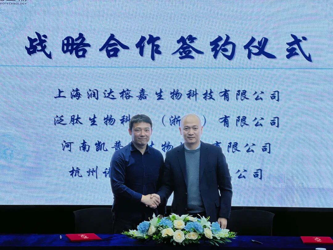 12月6日,上海润达榕嘉生物科技有限公司(以下简称“榕嘉生物”)分别与泛肽生物科技(浙江)有限公司(以下简称“泛肽生物”)、河南凯普瑞生物技术有限公司(以下简称“凯普瑞生物”)、杭州谱康医学科技有限公司(以下简称“谱康医学”)战略合作签约仪式在榕嘉生物公司举行。榕嘉生物董事长钱学庆、泛肽生物董事长何淼、凯普瑞生物董事长王辉、谱康医学副总经理何伟华携相关部门总监出席签约。