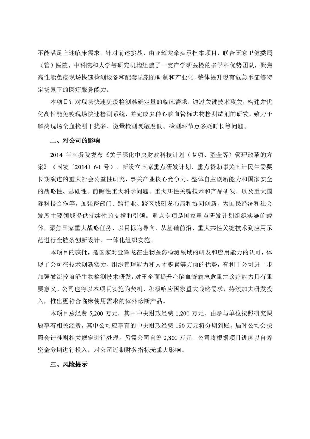亚辉龙牵头承担国家重点研发计划专项,总经费5200万!