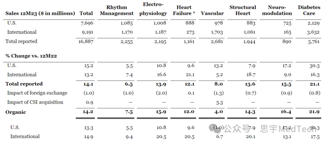 按业务增长速度排名如下:糖尿病护理增长最快(22.1%),其次是神经调节(15.5%),然后再是电生理(13.9%)和结构性心脏(13.6%)。其他部门的增长为:心力衰竭(12.1%)、血管(8.0%)、心律管理(6.5%)、和血管(8.0%)。