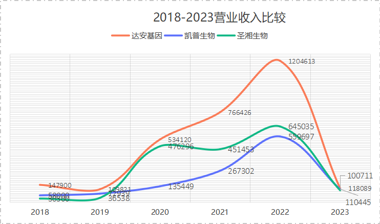 在过去的几年内,完成了华丽的脱变,从2018年的举步维艰,到2023年的跻身前三,营收规模突破10亿,圣湘生物用了5年的时间,这是一个非常不得了的成绩。