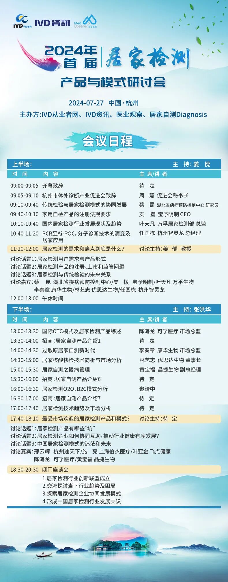 本次会议主要以居家检测相关企业、经销商、在线平台等相关人士为主,旨在交流居家检测产品与模式的前沿动态、用户需求、产业新技术进展等主题。