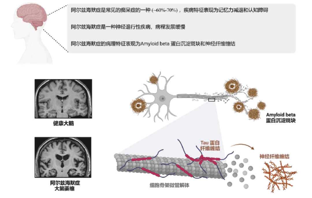 阿尔茨海默氏病(AD),也简称为阿尔茨海默氏症,是一种慢性神经退行性疾病,最初由德国精神病学家和病理学家Alois Alzheimer在1906年描述,后来以其命名。通常随着时间的推移开始缓慢并逐渐恶化。这是60-70%的痴呆病例的原因。