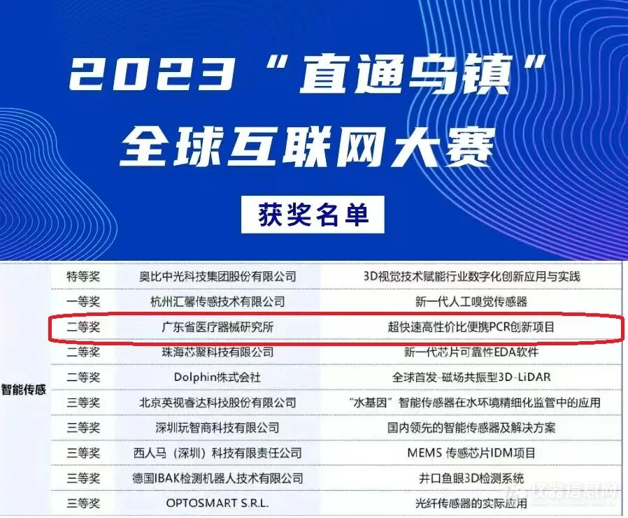 在11月8日开幕的2023年世界互联网大会乌镇峰会上,便携PCR创新项目斩获智能传感专题赛大奖。