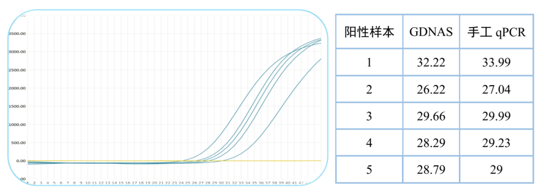 另外,吉检一体机的开放式平台也测试了十几个厂家的试剂,在同一样本条件下,均能获得和经典ABI7500一致的阴阳性结果和相近的Ct值趋势。在试剂厂家测试时,我们使用了阳性临床样本验证吉检一体机的仪器性能指标,仍然可以达到实验室测试的数据要求(如下图)。