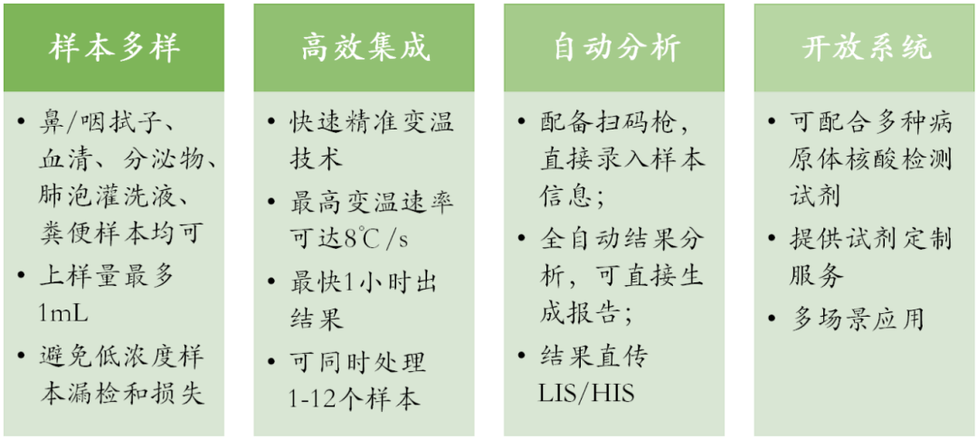 那么,什么样的产品才能称为分子POCT呢?简单来说,分子POCT是POCT技术中涉及核酸检测的一大类技术的总称,是将核酸提取和分子扩增检测整合为一体化封闭系统[1],特点如下: