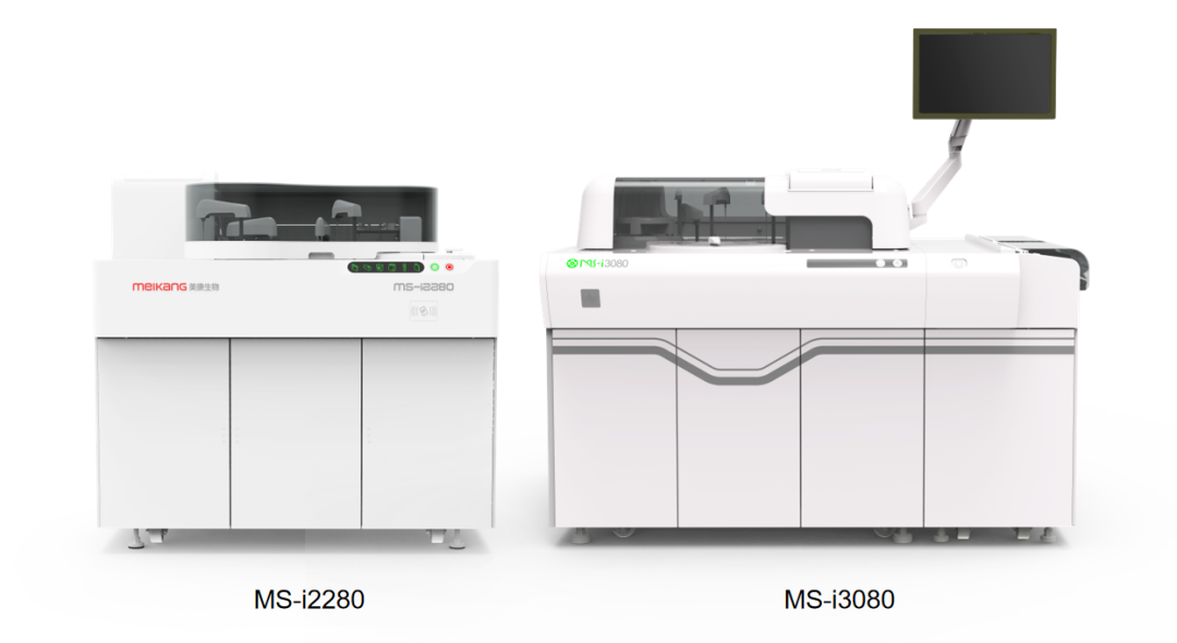 根据官网消息,美康生物科技的两款免疫发光检测平台,分别是200T/H的MS-i2280和300T/H的MS-i3080。300测速的仪器,可以完成模块化连接,最大速度能达到1200T/H。