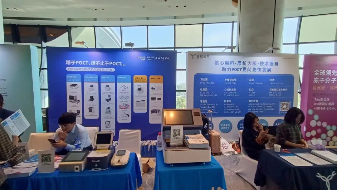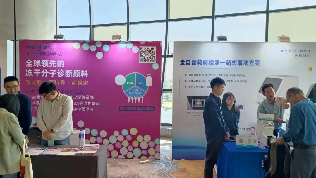 默克是唯一两个展位大小的展商,而且在首日上午开幕式上还安排了NC膜(密理博)的技术分享。这也是没有想到,默克又会重新推介NC膜。此前,默克和赛多利斯平分秋色,可惜三年没有大力销售,如今赛多利斯一骑绝尘,国内又冒出一众国产膜,默克是否能重新夺回市场?大家可以拭目以待。不过他们的产品很多,微球,分子酶,都有,所以即使品牌足够强,推广依旧努力。这一点,值得国内同行学习。杭州孕育了不少分子POCT企业,获证最多的是优思达,也是最成熟的分子POCT企业,后面还有遂真,比格飞序,快速PCR埃妥生物,这次又看到了这个奥盛,做得也是小巧可爱。再加上几个上市公司也会加入战局,分子POCT可谓百花齐放。迈迪安,也是做市场十分勤奋的外企,4月桔园的会有它,5月的CACLP有它,6月的上海什么国际诊断试剂会有它(这个会,IVD相关的屈指可数),现在POCT的会又有他。如果评选年度最勤的外企市场部,迈迪安当之无愧。辉锦创新的卡条式开放分子POCT,有单通道的,也有多通道的,我看了一眼,跟艾科诺差不多,上次慕尼黑生化分析展,也见了同类的卡条形分子POCT。这个类型的分子POCT,数量也逐渐在增多。