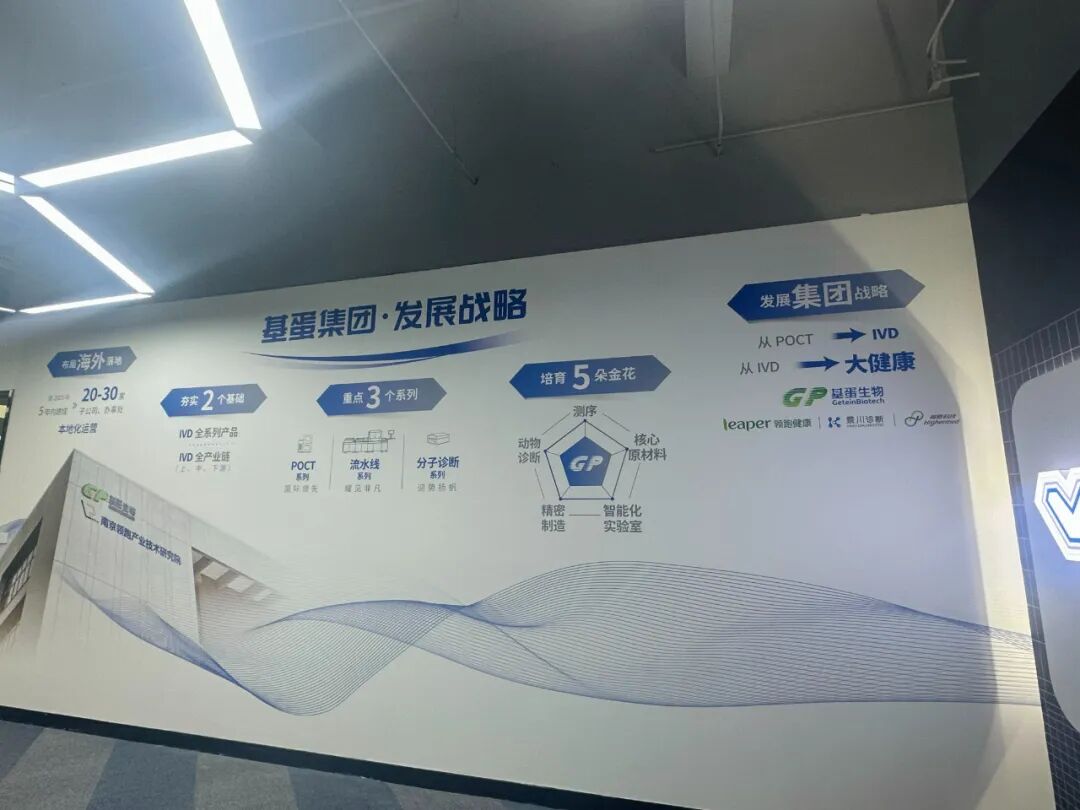 我在基蛋展厅的一面墙看到了企业的发展战略,从POCT到IVD,从IVD到大健康,看来大健康是IVD企业的尽头,我已经看到很多IVD企业布局大健康了。基蛋这几年也在发力实验室生免大设备及小流水线,看来是要进一步巩固二级市场。在大健康上,也做了不少心脏康复、训练方面的产品试水。