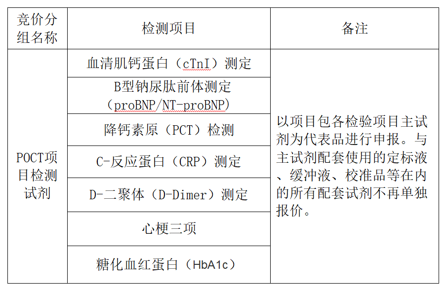纳入本次集中采购的品种为POCT检测项目试剂,投报企业需配备所需相应的设备。