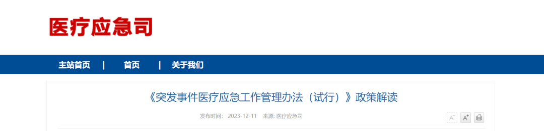 12月11日,为进一步规范突发事件医疗应急工作,有效减轻各类突发事件对人民群众身心健康和生命安全的危害,维护人民群众健康权益,保障社会和谐稳定与经济平稳发展,国家卫健委发布《突发事件医疗应急工作管理办法(试行)》政策。自发布之日起实施。