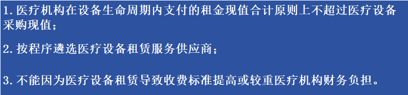 文件明确为加快先进设备购置、缓解财政一次性支出压力,提升相关医疗服务能力并补齐短板,开展在医疗机构相关医疗设备租赁试点。