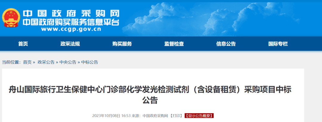 舟山国际旅行卫生保健中心门诊部化学发光检测试剂(含设备租赁)采购项目